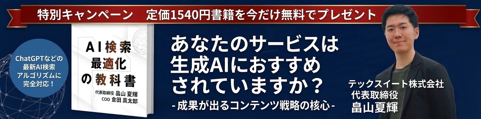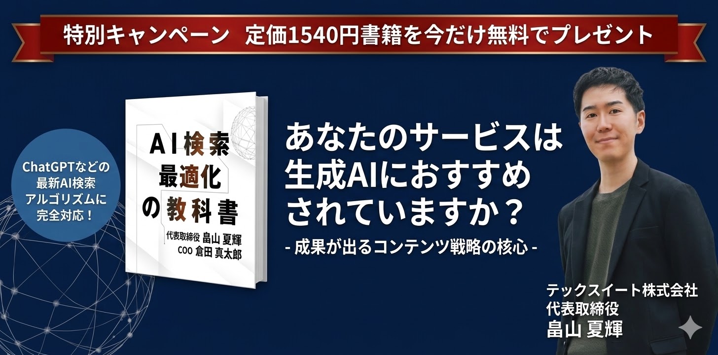 弊社執筆で10万文字以上の書籍「AI検索最適化の教科書」をプレゼントいたします。